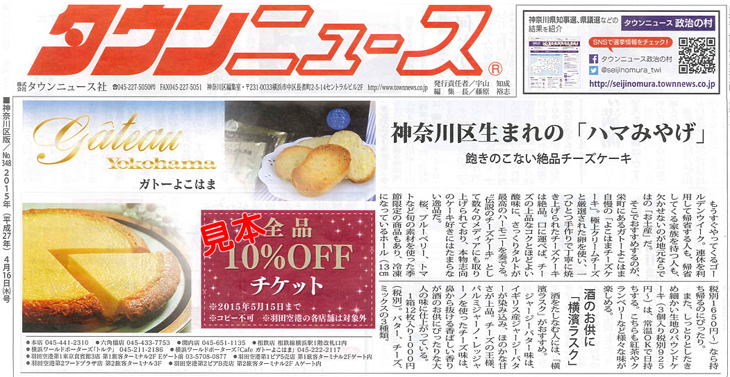 2015年4月1日のKBS京都のラジオ番組「チキチキ・遠藤 Nami乗りジョニー」(毎週水曜日 14:00-17:00放映)の「くいしんぼ美人バンザイ」(15:15-15:30)コーナーで、ガトーよこはまの小山営業部長が電話出演し、ガトーよこはまの商品「桜チーズケーキ」や「抹茶あんこチーズケーキ」「よこはまチーズケーキ」を紹介をいたしました。