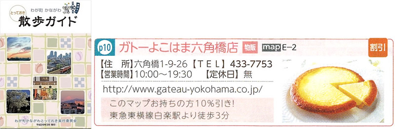 「わが町 かながわ とっておき」をめぐりながら散策できる神奈川区内全10コースを紹介している「わが町 かながわ とっておき 散歩ガイド」にサポーターとしてガトーよこはま六角橋店が紹介されています。