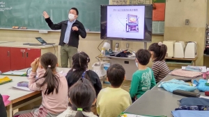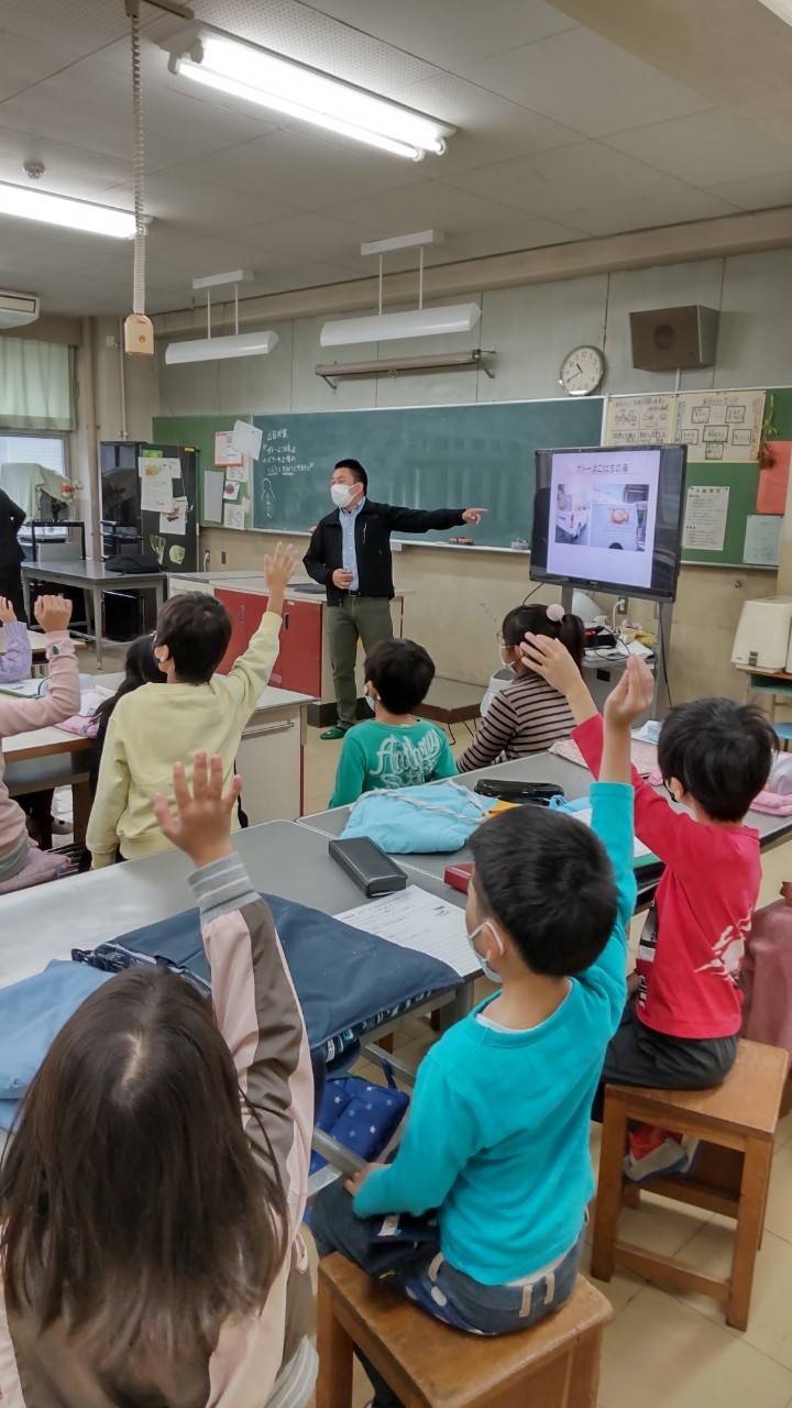 幸ヶ谷小学校に出前授業 2022.10.25 10月25(金)~28日(月)※この日付はカスタムフィールドで対応 2022年(令和4年)10月25日 ガトーよこはま小山正治社長が幸ヶ谷小学校3年生の教室に出前授業に行きました。コロナ禍なので、工場見学の代わりに、小学校教室とガトーよこはまの工場をリモートで繋ぎ、リアルタイムでケーキのできる様子を見てもらいました。後日、生徒さんからお礼のメッセージを頂きました。